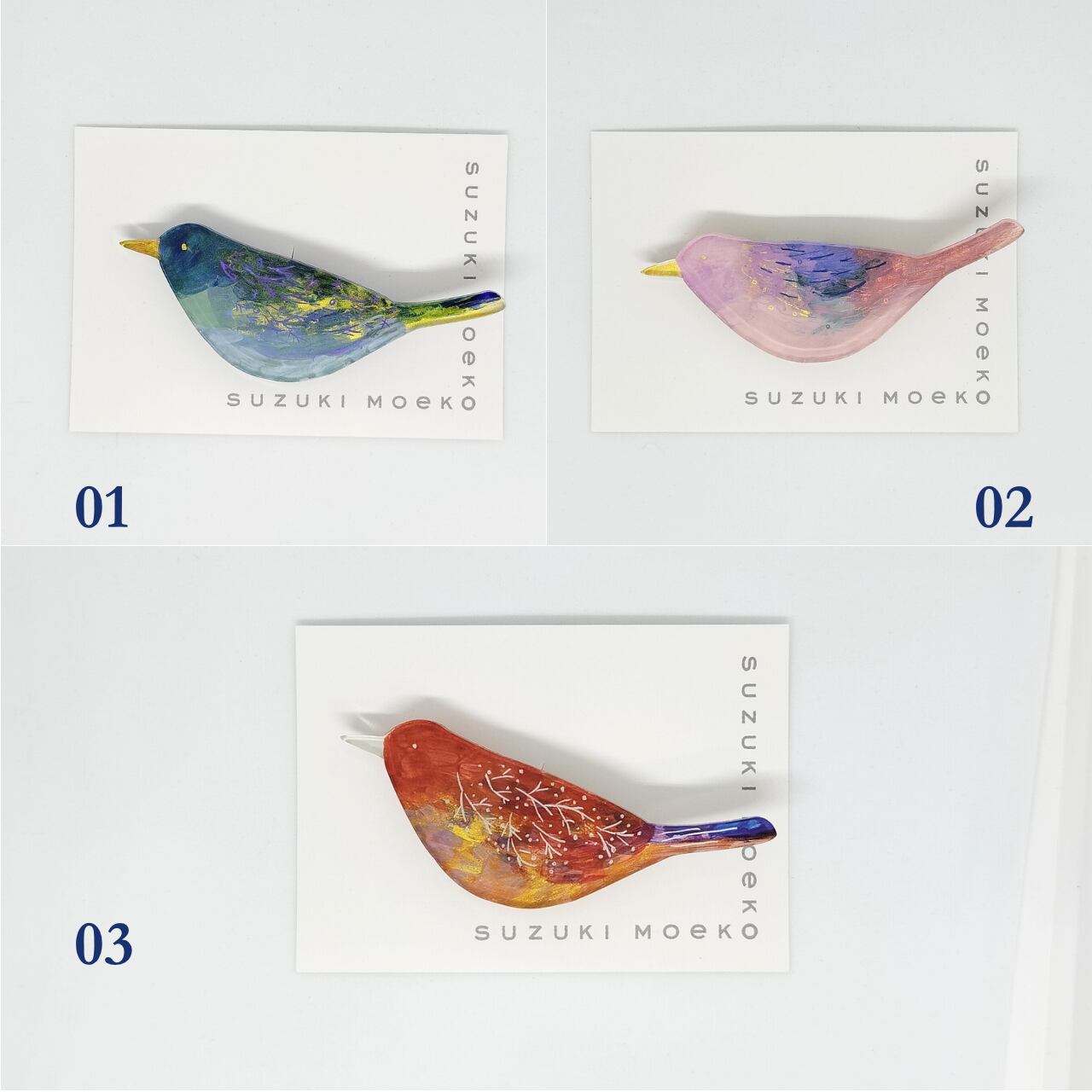 〈suzukimoeko〉ブローチ(鳥 Aパターン/3種)|企画展「てのひらの展示室」